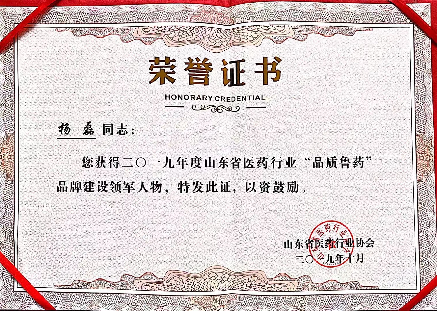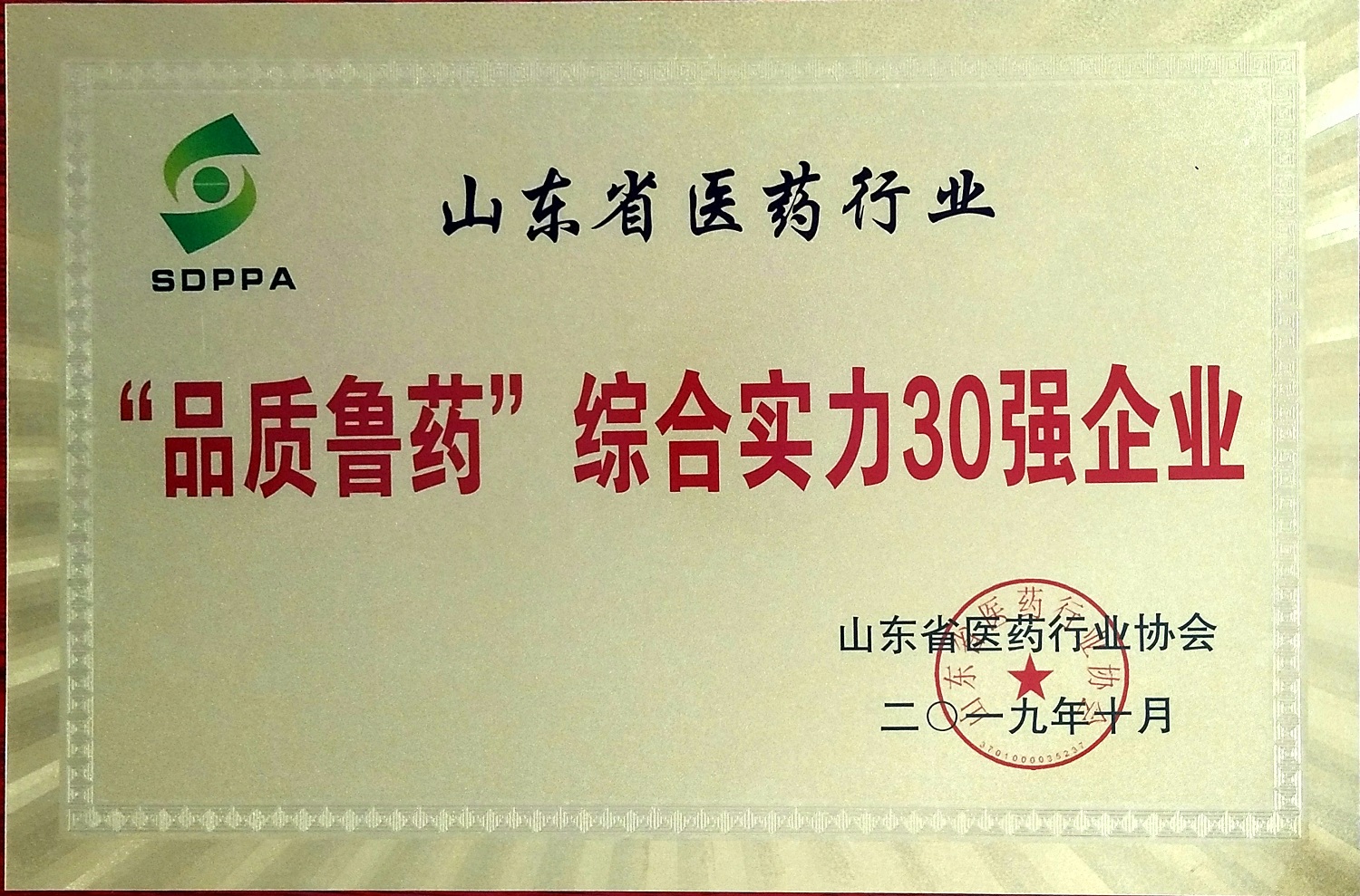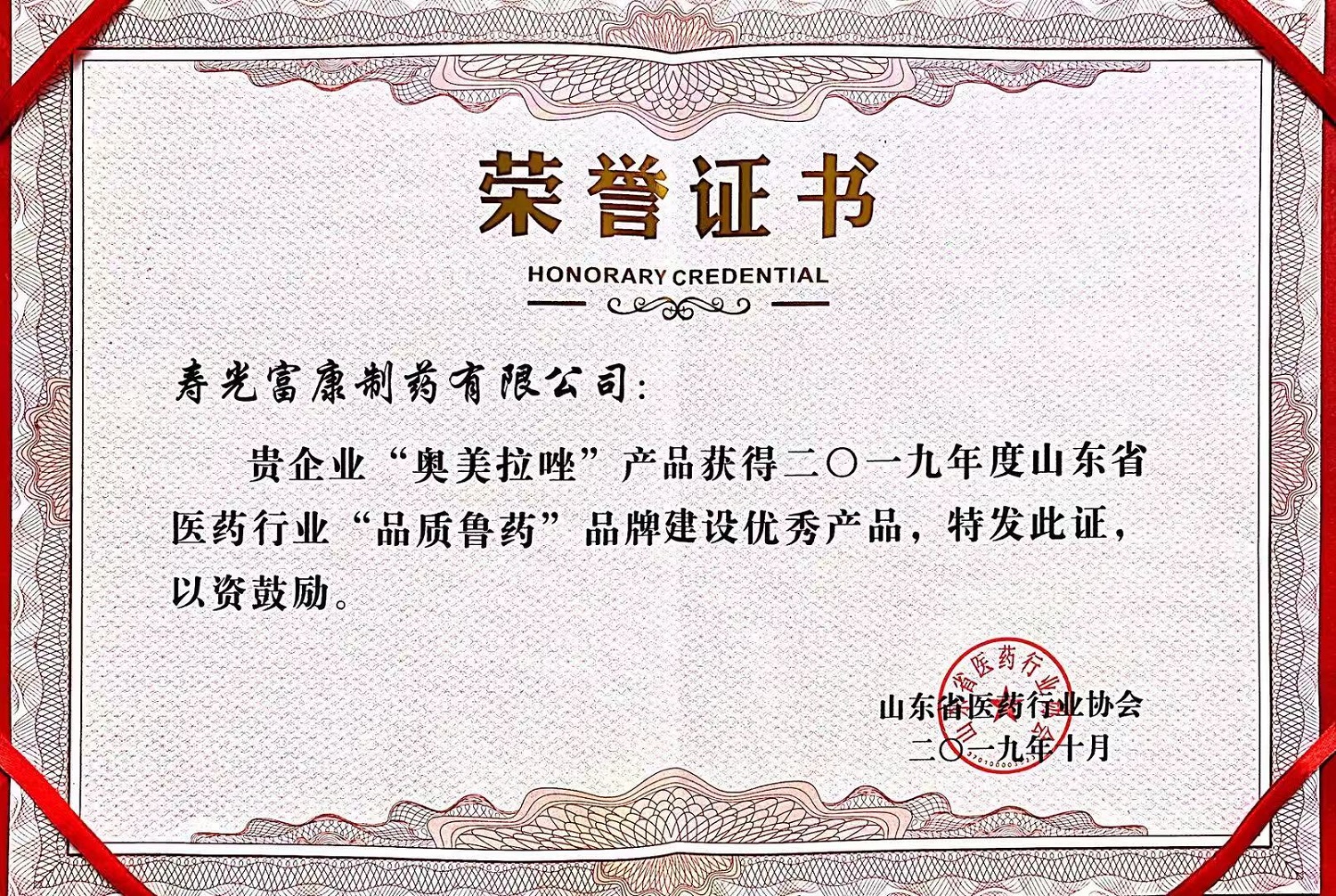会议公布并表彰了山东省医药行业协会2019年度“品质鲁药”品牌建设综合实力30强企业、领军人物和优秀产品。集团党委书记、总裁杨磊荣膺“品牌建设领军人物”,集团公司获得“品牌建设综合实力30强企业”荣誉称号,奥美拉唑入选“品牌建设优秀产品(原料药)”。